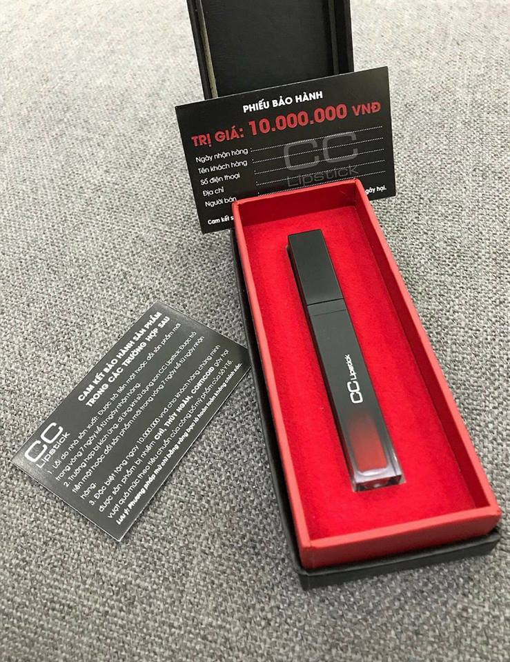 Trong hộp son có kèm phiếu bảo hành trị giá 10 triệu đồng, điều này cho thấy CC Lipstick rất chú trọng tới chất lượng cũng như mẫu mã của sản phẩm
